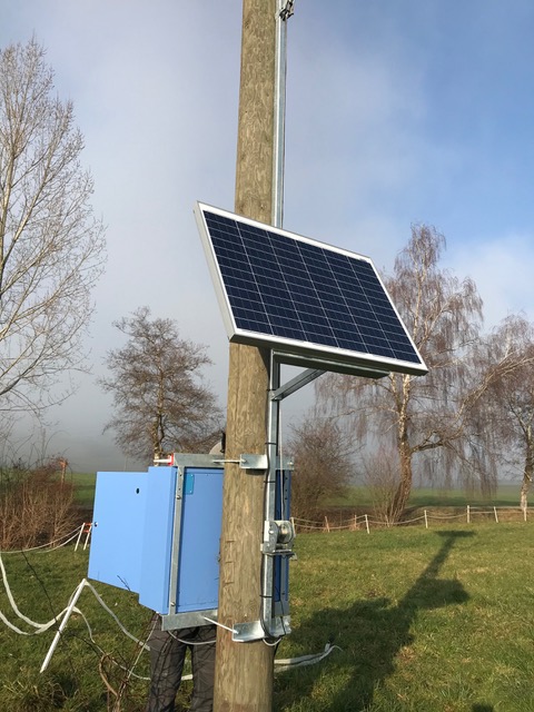 Das Solarpanel ist am Masten des Storchennestes montiert und ideal nach Richtung Süden ausgerichtet.